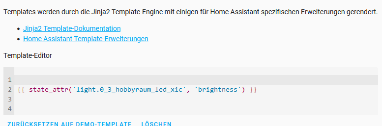 Geh mal unter Entwicklerwerkzeuge - Vorlage (Template) und kopiere dir folgendes rein {{ state_attr('light.0_3_hobbyraum_led_x1c', 'brightness') }}