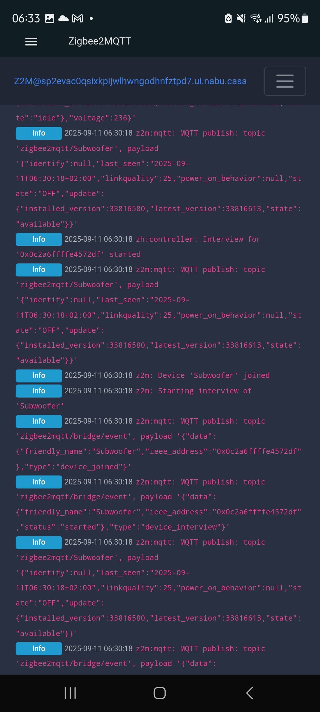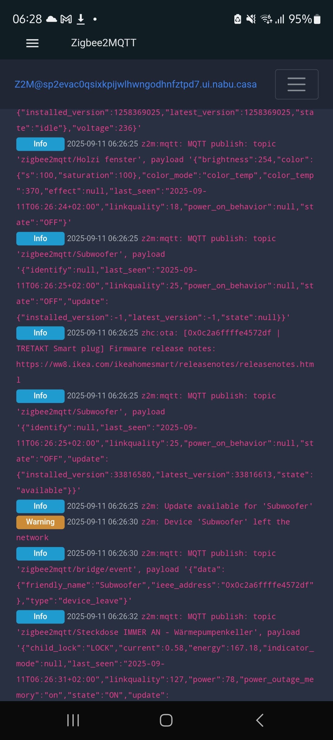Ich vermute evtl der Sonoff P Stick der nicjt mehr Geräte zulassen will? Aber warum bleibt der paar Sekunden. Einmal konnte ich zb die Tretakt schnell in Subwoofer umbenennen aber wurde trotzdem aus dem zigbee netz geworfen. Wird jetzt immer als Subwoofer gefunden. Aber wird halt rausgeworfen spätestens 10 Sek später meist 2 bis 4.