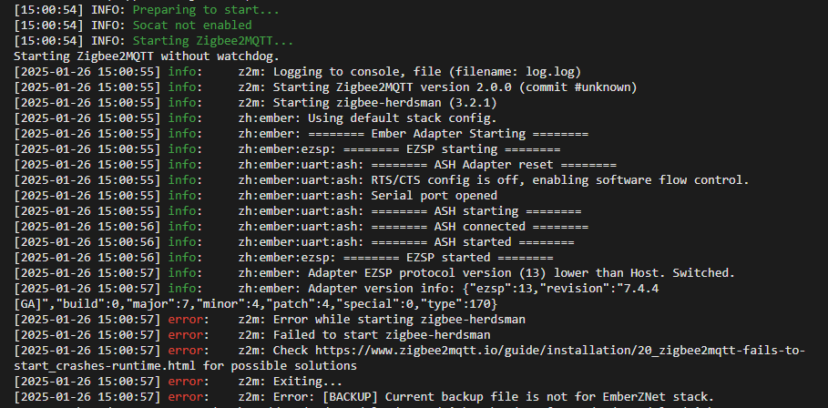 [20:15:10] INFO: Starting Zigbee2MQTT...