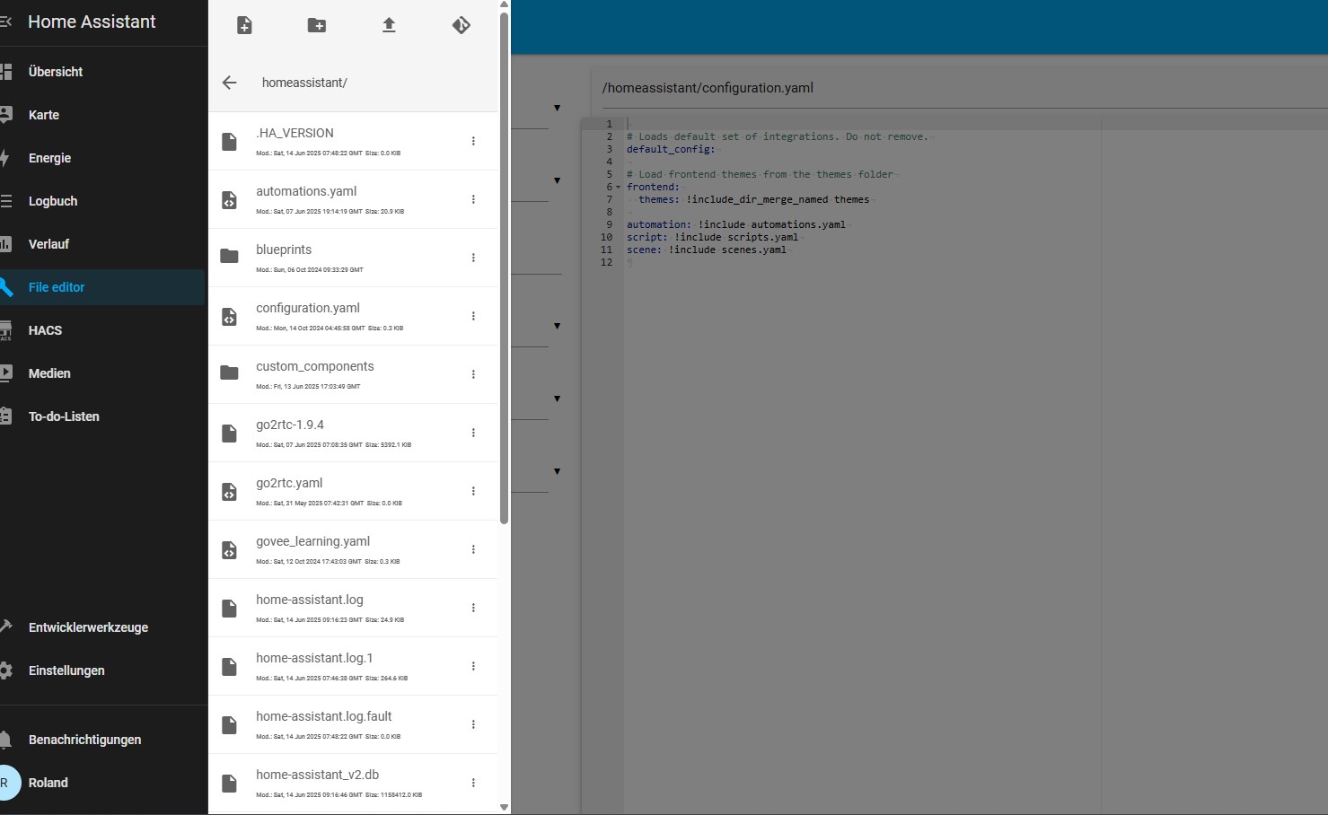 (1) Ich habe mir den File Editor installiert und die configuration.yaml gefunden