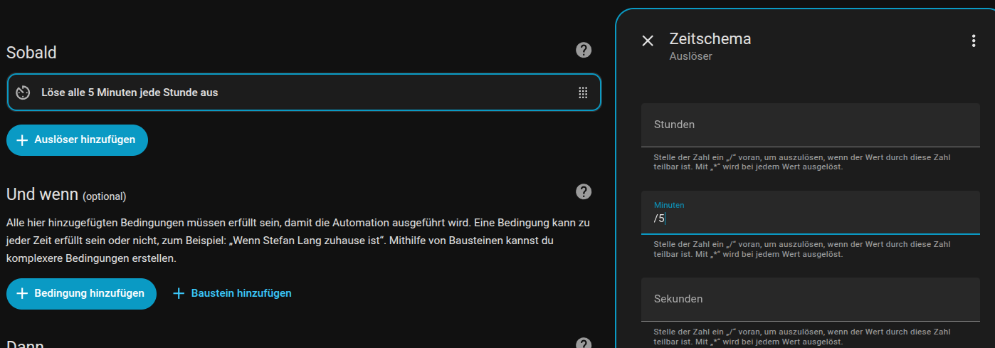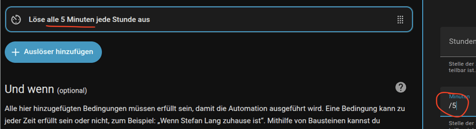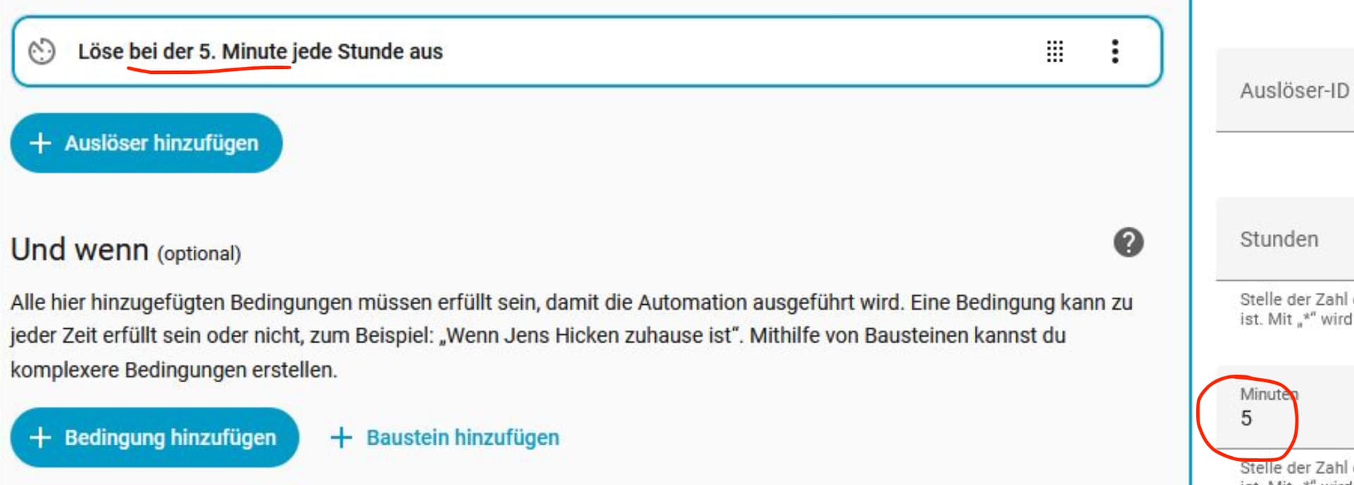 (btw : die automatische Beschreibung von HA ist auch mit / davor trotzdem falsch .. ( alle 5 Minuten jede Stunde )