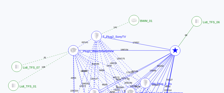 Wie ich oben auch schon erwähnt hatte nutze ich die Z2M Karte als grobe Orientierung wenn ich irgendwelche Änderungen im Zigbee Mesh durchgeführt habe, weil ich der Meinung bin das dort das Mesh dynamisch mit seinen realen Verbindungen und LQI Werten abgebildet wird. Auch wenn nicht immer alles zu 100% korrekt ist. Aber besser das und so als gar nichts. ![]()