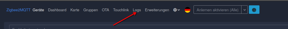 Fehlersuchzeit in Z2M habe ich auf Debug gestellt.