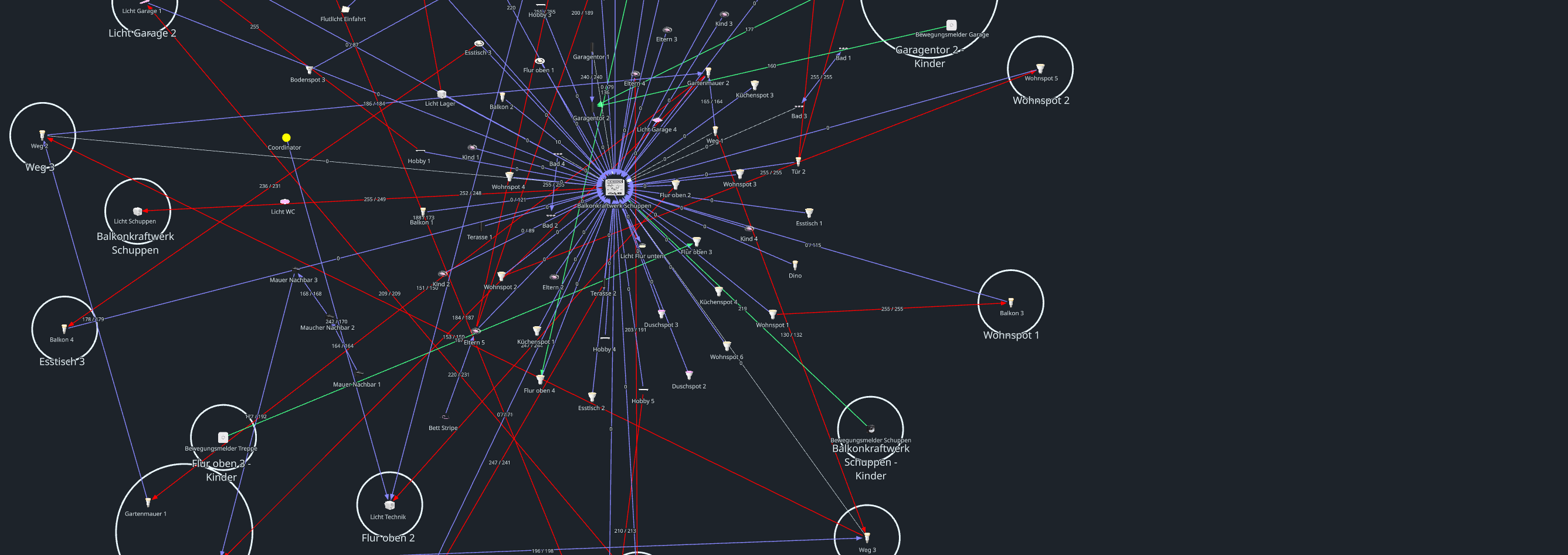 Ich habe eine recht großes zigbee Netzwerk bestehend ausschließlich aus Hue Lampen, nun habe ich zum ersten mal ein Shelly Gerät hinzugefügt, genau genommen ein Shelly EM Mini Gen4. Es läuft alles gut, es gibt auch keinerlei Probleme aber mein Netzwerk sieht nun so aus und das irritiert mich doch etwas, vor allem da der Schuppen wo der Shelly drinn ist rund 20m vom Haus entfernt ist. Kann mir das jemand erklären? Die Verbindungen sind schlechter geworden daher macht es für mich keinen Sinn das sich ein Großteil der Geräte nur auf den einen Shelly verbinden, das war vorher nicht so. Es war homogen, der Coordinator saß vorher in der Mitte und je nach Abstand zu eben diesen hatte sich das Netzwerk aufgebaut. (der Shelly ist nun ca 2 Monate im Netzwerk)