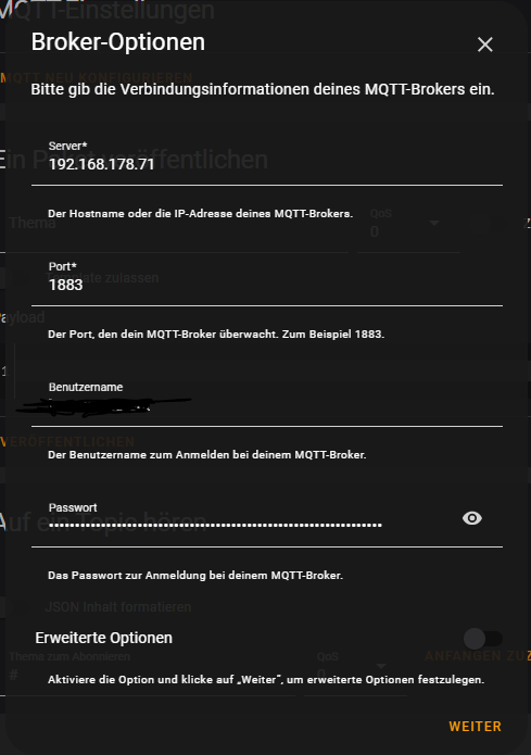 Sehe ich genau so, diese MQTT Geschichte kann etwas schwierig sein am Anfang, ich würde aber auf keinen Fall den öffentlichen Broker verwenden, was voreingestellt ist sondern den eigenen, den du natürlich vorher im HA installiert haben musst.