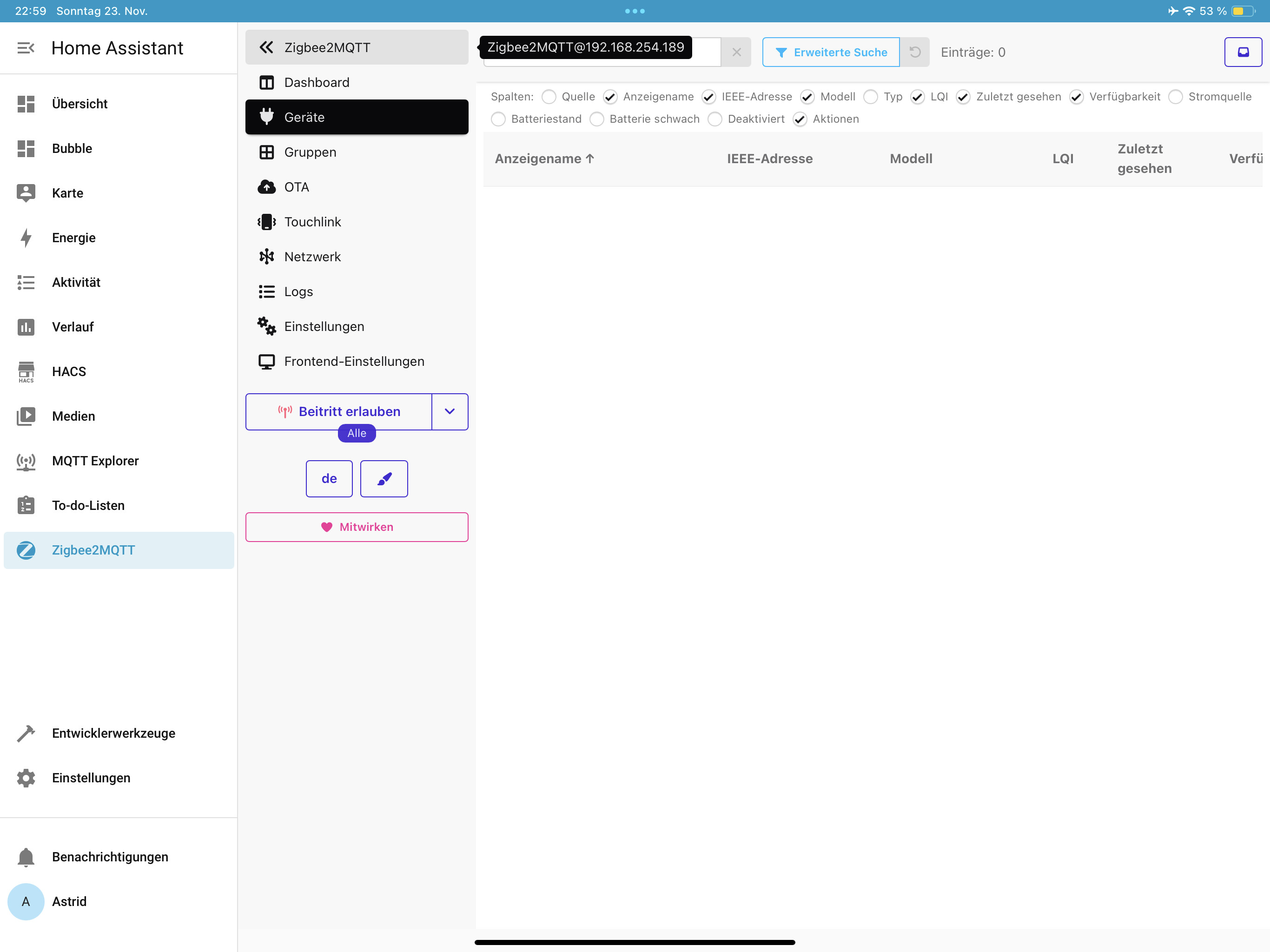 Was läuft hier falsch? Wo finde ich die Schaltfläche um Geräte hinzuzufügen? Meine Hardware ist Home Assistant Green mit einem Sonoff ZBdongle P.