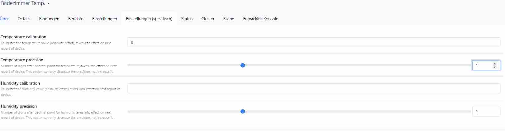 Ich habe bei den Temperaturfühlern unter “Einstellungen (spezifisch)” bei Temperature bzw. Humidity precision** die Werte erst auf 0 gestellt.