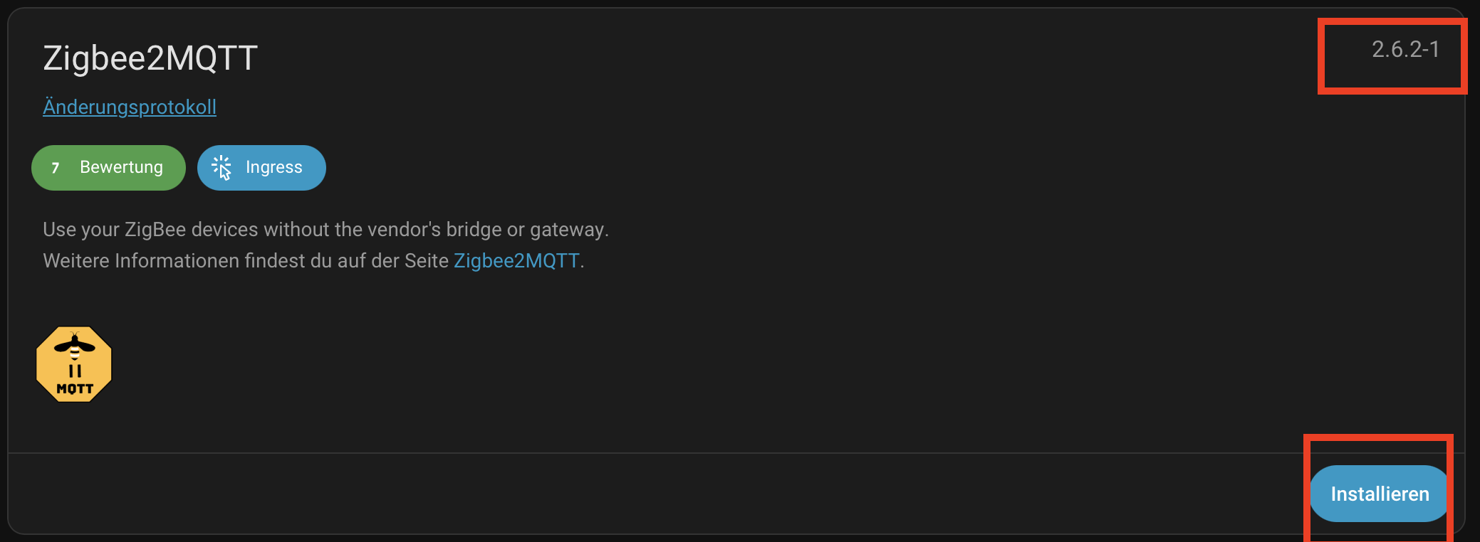 Damit hast Du dann ein neues ZigBee2MQTT Add-on installiert in der Version 2.6.2-1